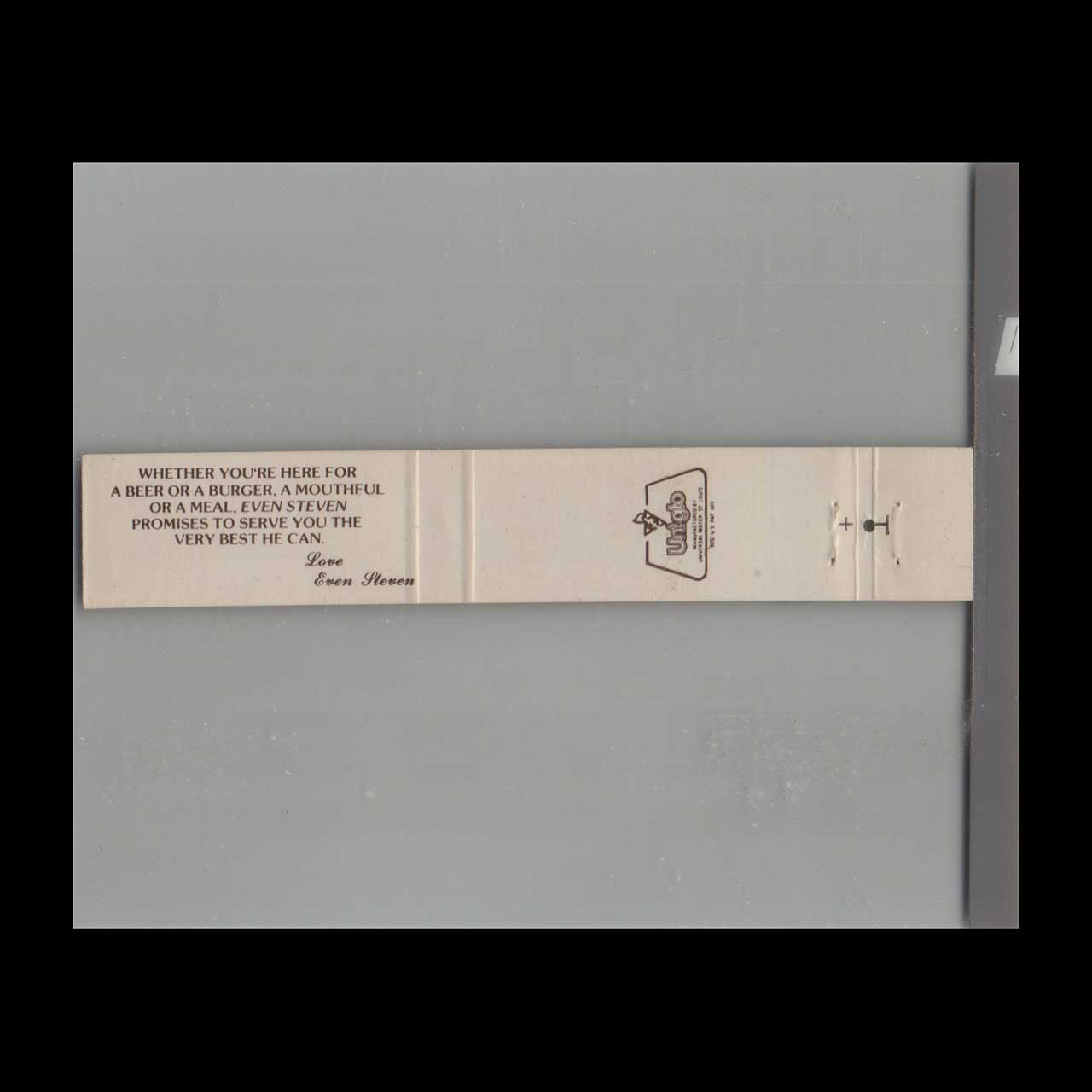This vintage matchbook cover promotes 10 Strike Miami, FL Evetta Steven Restaurant & Lounge. Produced during the mid-century advertising era, it reflects period typography and graphic design. A collectible piece of American advertising ephemera suitable for display or archival preservation.