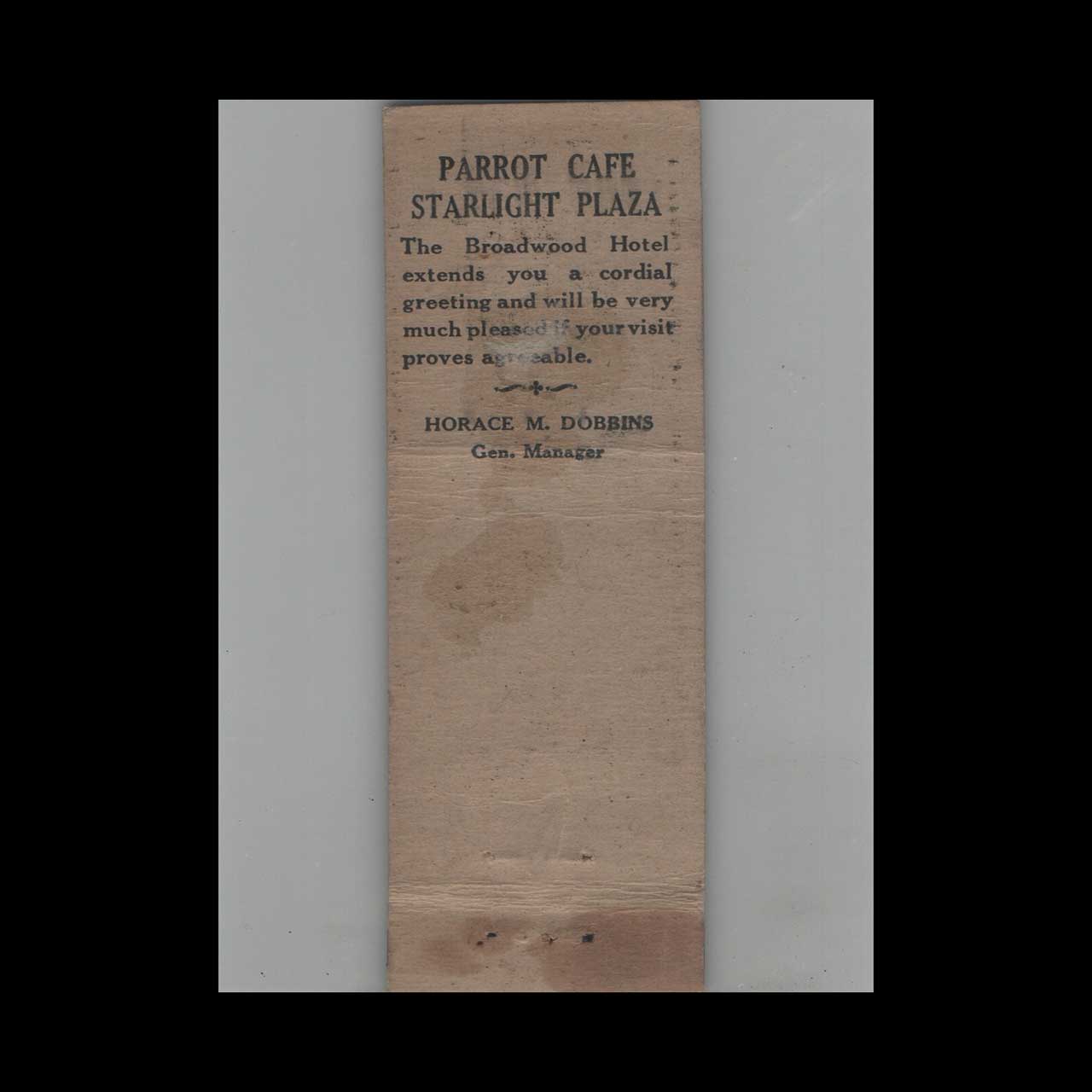 1930s Diamond Quality Broadwood Hotel Matchbook Cover