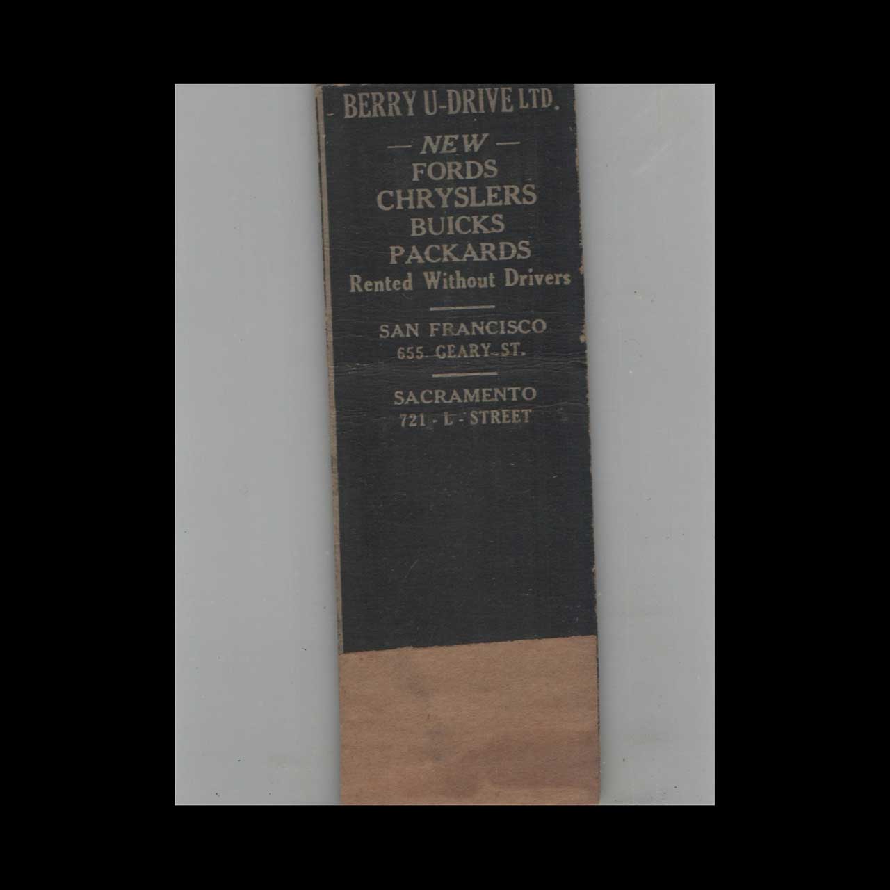 1930s Diamond Quality Hotel Berry Matchbook Cover Sacramento