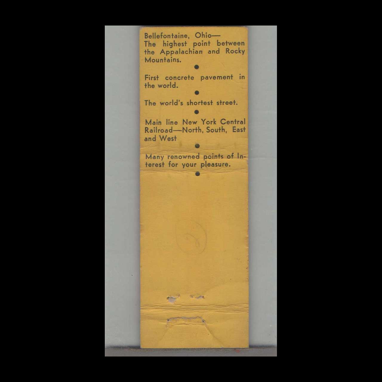 The Lyman’s Restaurant in Bellefontaine, OH, was a beloved 1930s dining establishment known for its warm hospitality. This vintage matchbook cover is a classic ephemera relic cherished by Americana collectors.