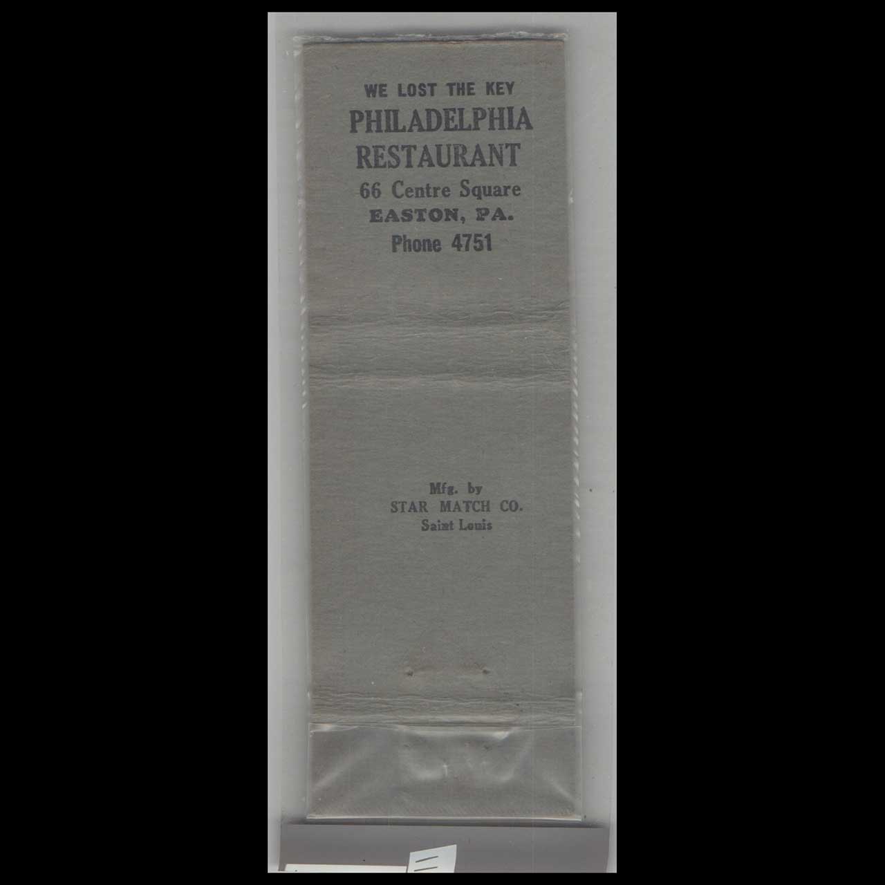 Discover the 1930s Easton, PA restaurant matchbook by Star Match Co., Philadelphia, showcasing vintage dining charm. A nostalgic piece of Americana for collectors and enthusiasts.