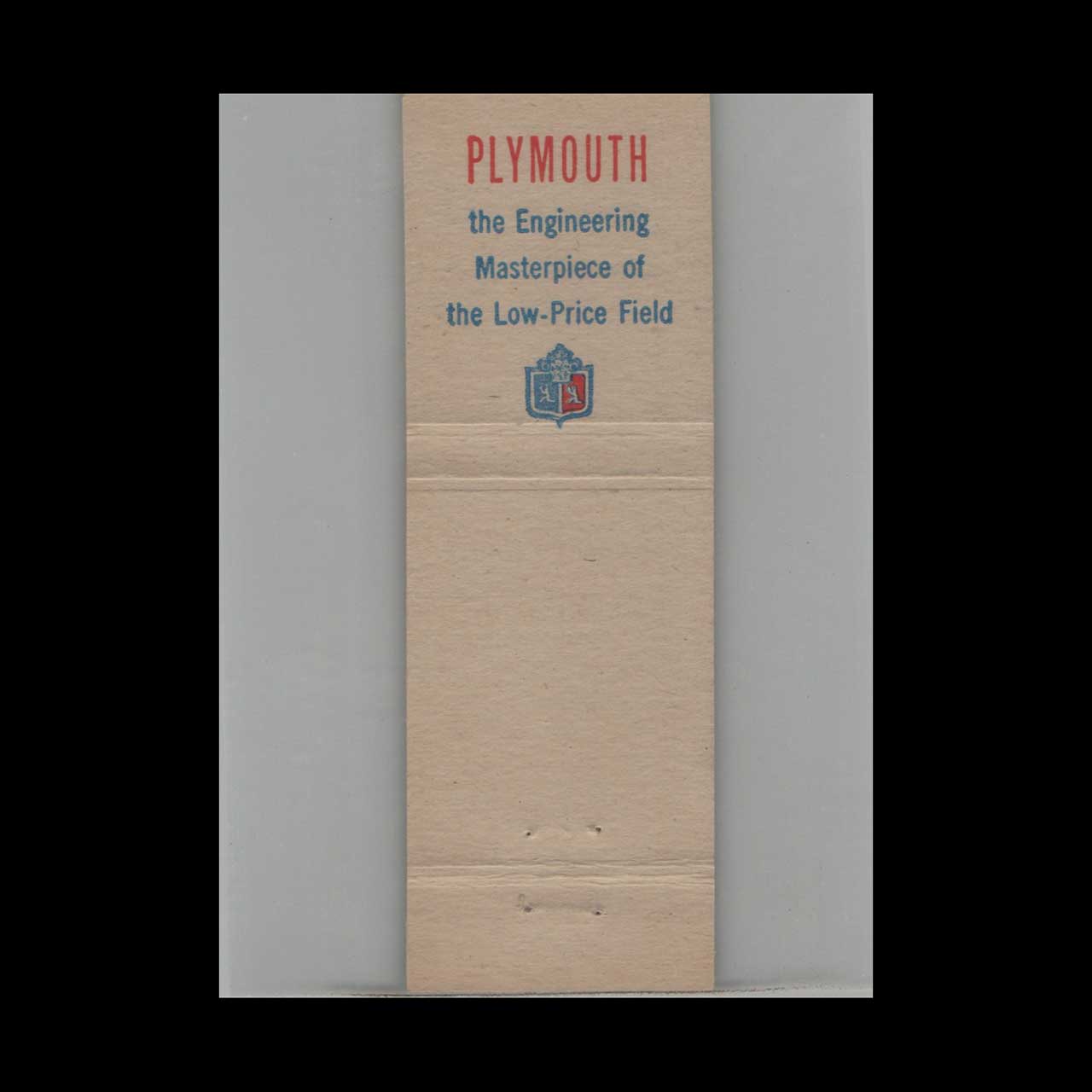 1954 Plymouth Dealer Matchbook Cover Elkinton Auto Mondovi WI