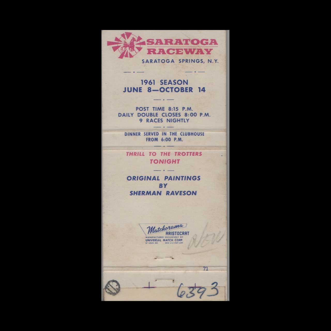 Discover the iconic 1961 Saratoga Raceway in Saratoga Springs, NY, a historic hub for thrilling horse racing. This vintage matchbook is a classic ephemera relic cherished by Americana collectors.