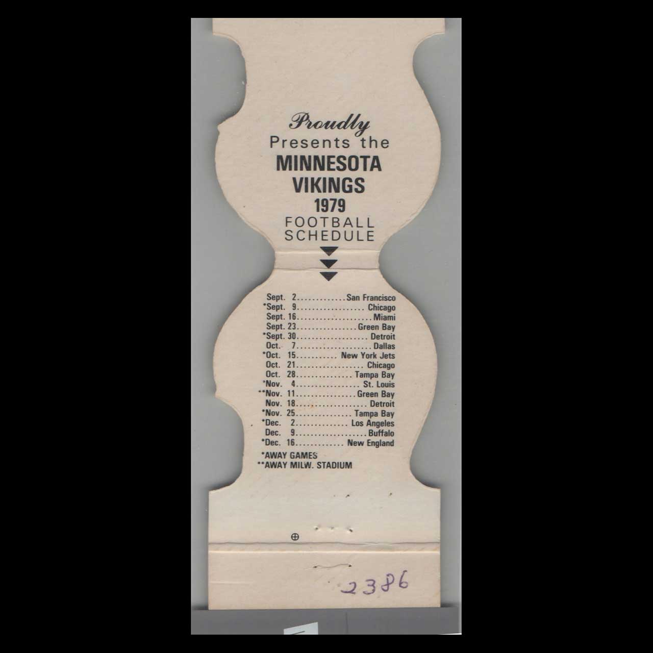 1979 Minnesota Vikings Football Schedule Matchbook Cover