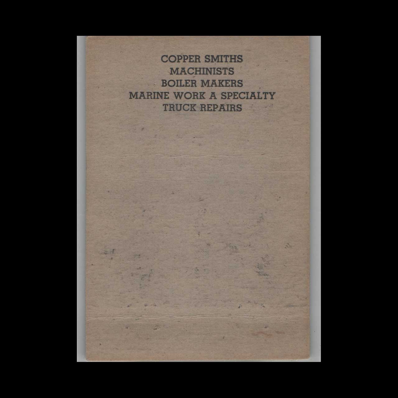 Cumberland Welding Service in Portland, ME, specialized in expert metalwork and repairs. This vintage Advance Match Co. cover is a nostalgic piece of Americana for collectors.
