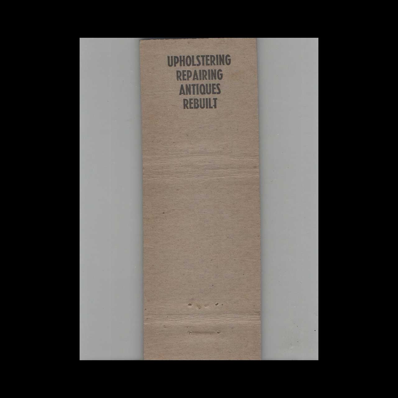 Murphy’s Custom Furniture on Holmes St. offers handcrafted, timeless wood furnishings. A nostalgic piece of Americana for vintage matchbook collectors.