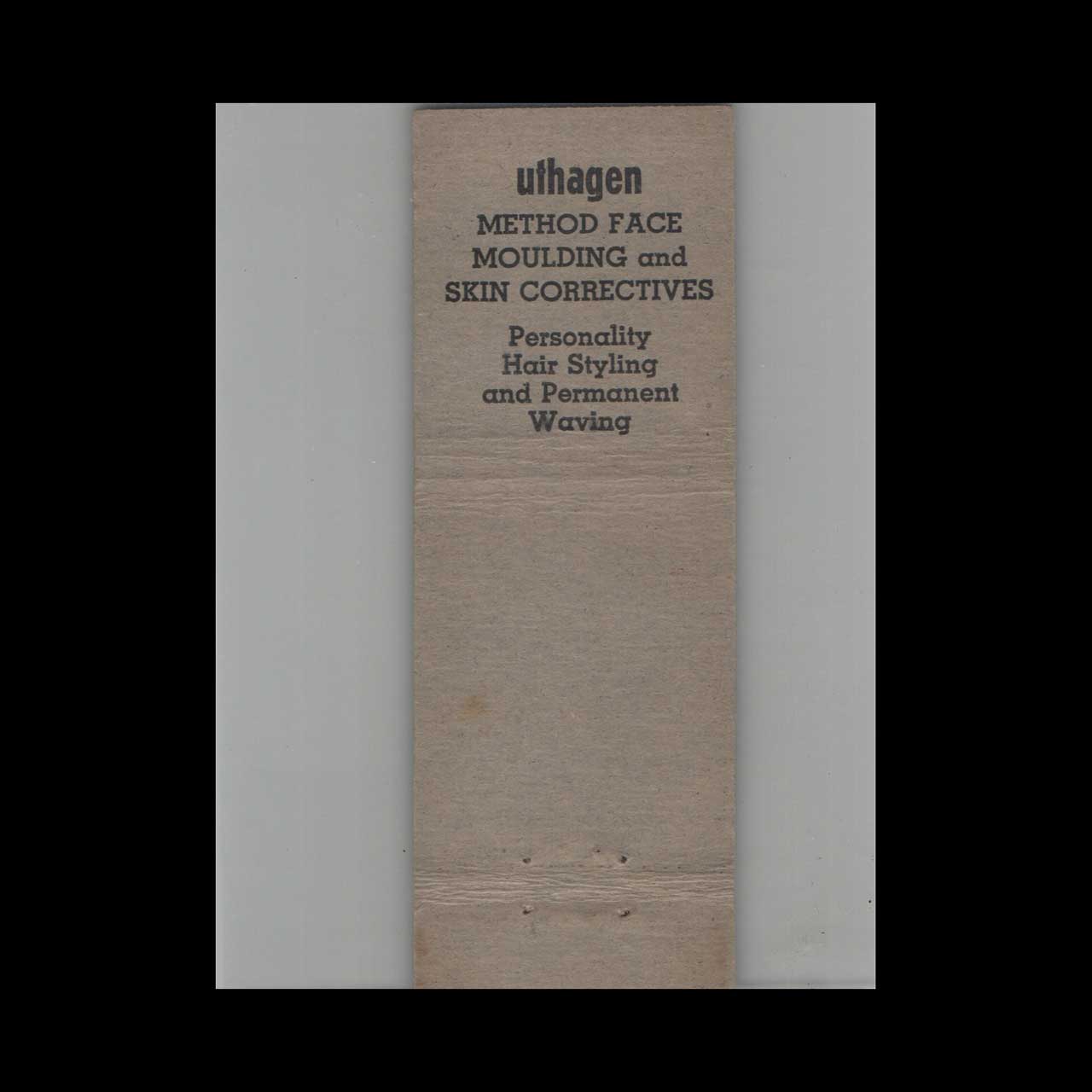 Uthagen Beauty Studio in Milwaukee, WI, offered timeless elegance and personal care services. This Advance Match Co. matchbook is a classic ephemera relic for Americana collectors.