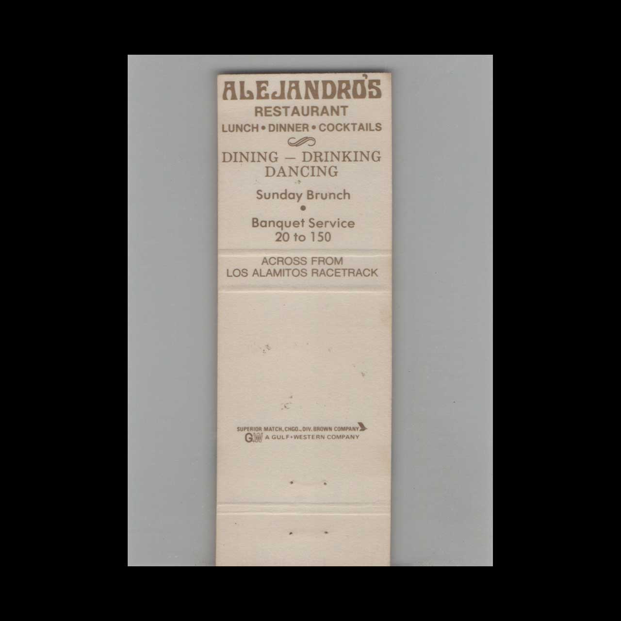 Alejandro’s Restaurant Los Alamitos Matchbook Cover