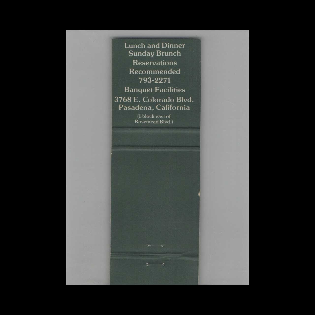 Alexander’s Brass Rail Pasadena Matchbook Cover