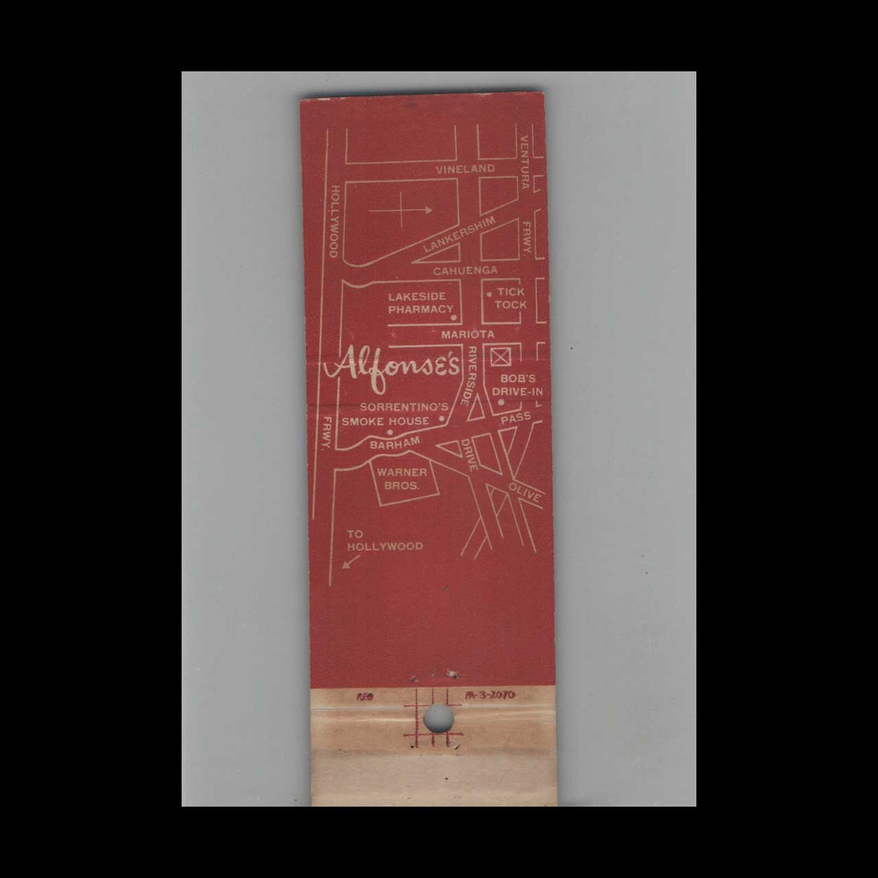 Alfonse’s Continental Cuisine Toluca Lake Matchbook Cover