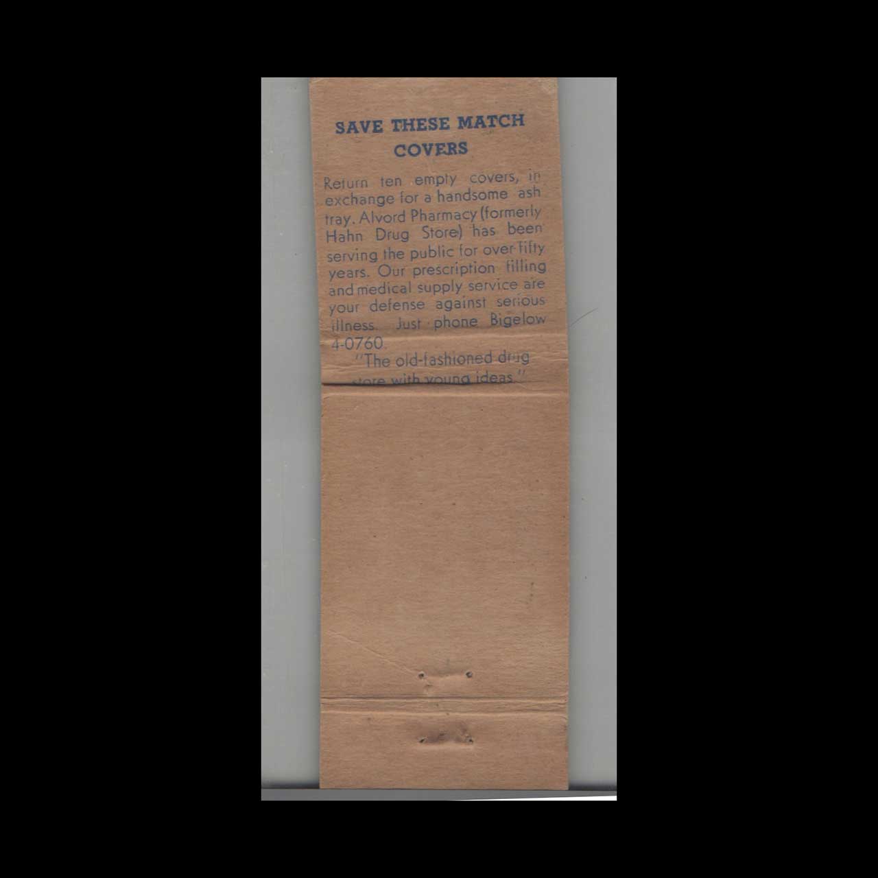 Alvord Pharmacy Matchbook Cover Newton Center MA