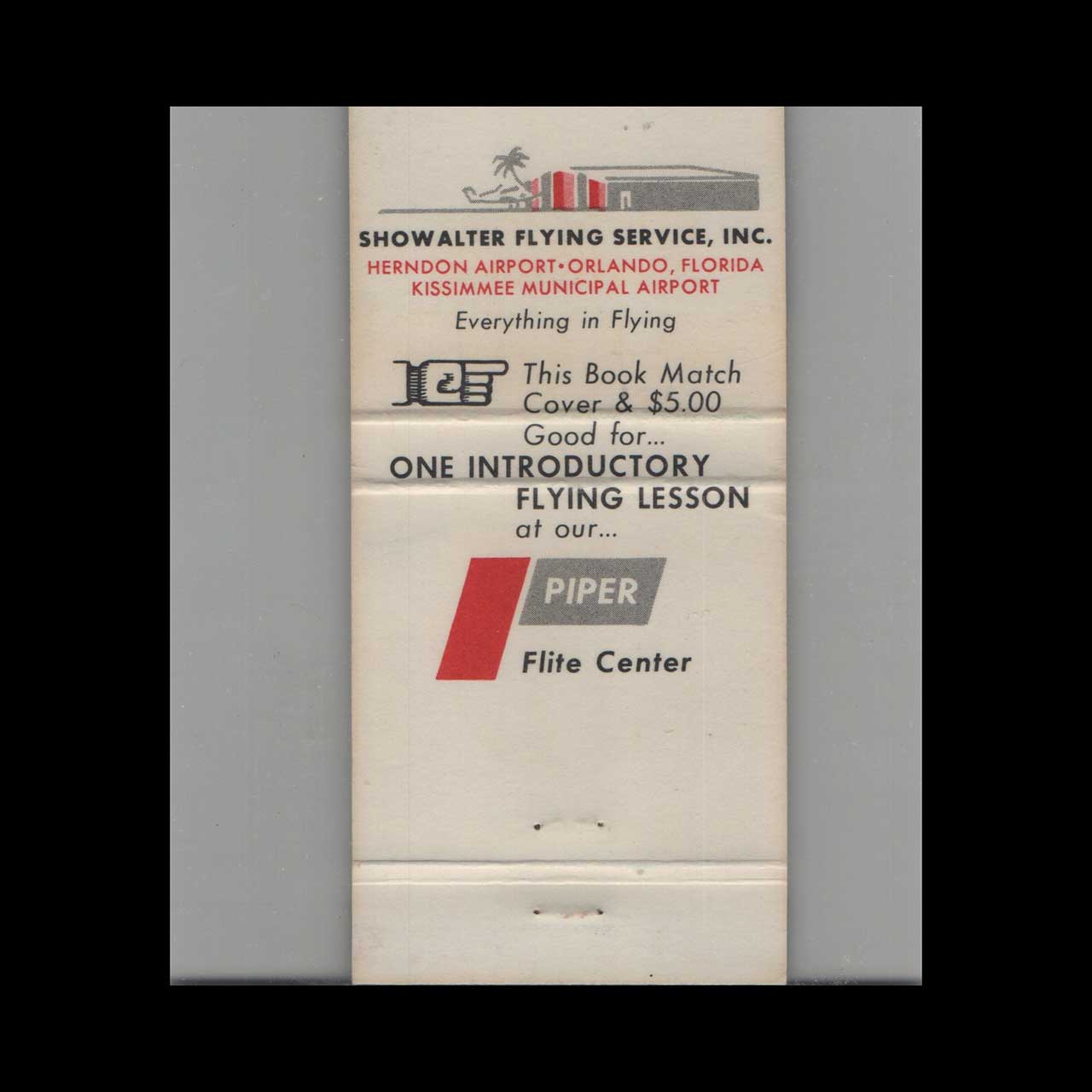 Showalter Flying Service at Piper Flite Center in Kissimmee offered expert aviation services and flight training. A nostalgic piece of Americana for collectors.