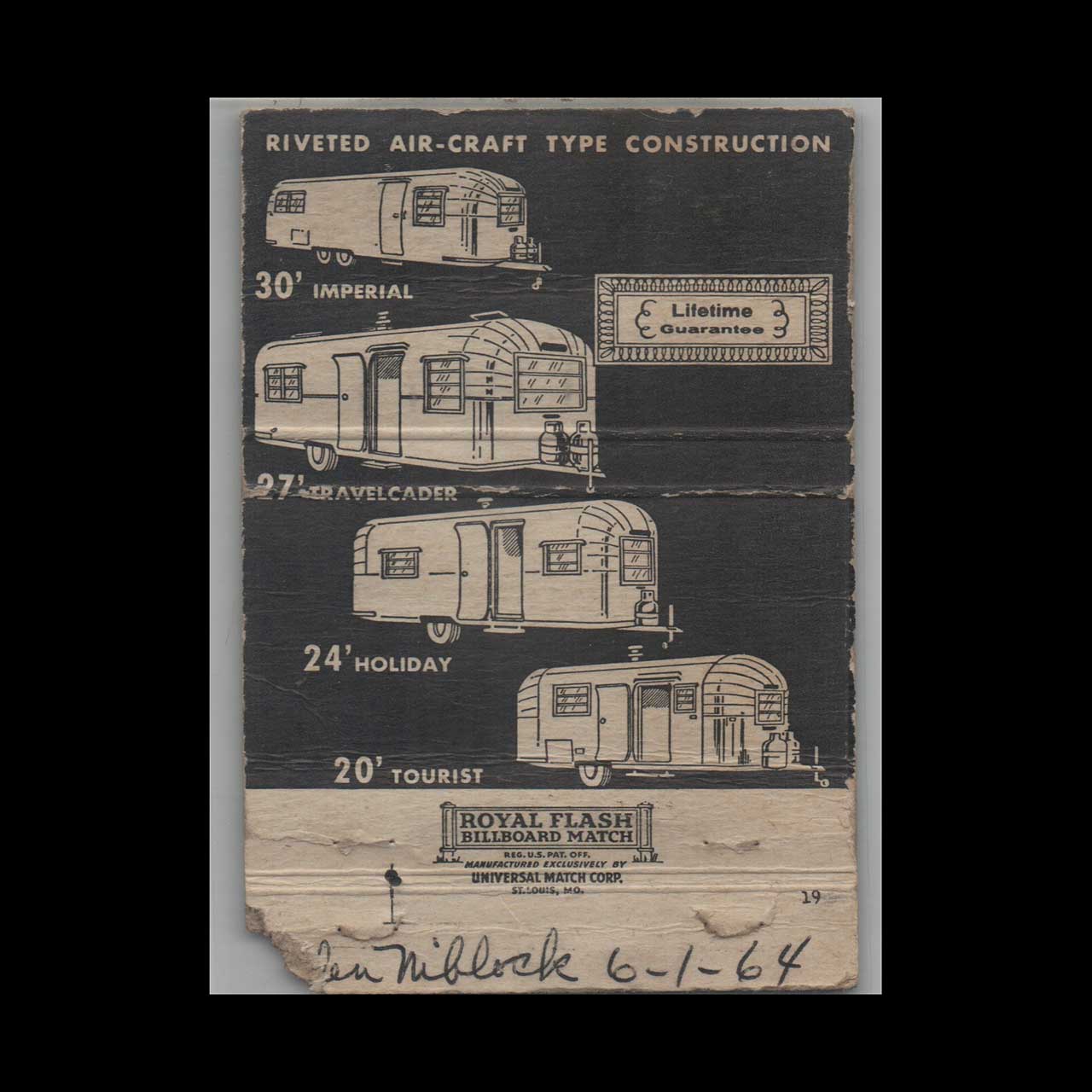 Avion Travel Trailers Matchbook Cover Anderson IN