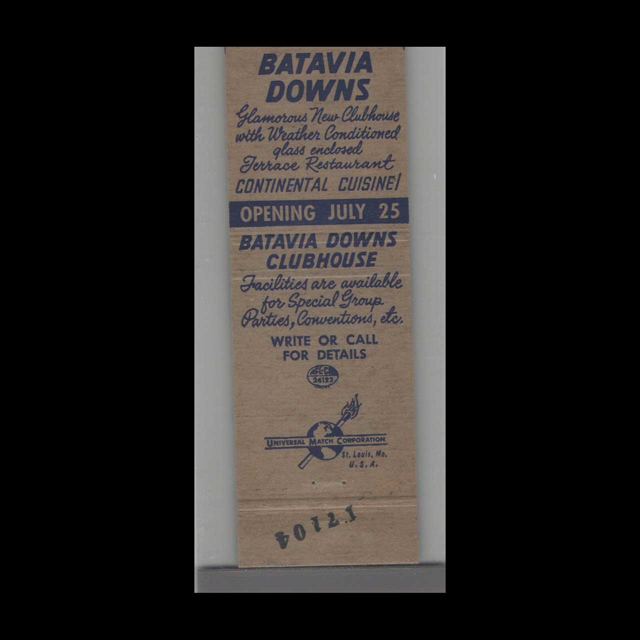 Batavia Downs Race Track Matchbook Cover Batavia NY