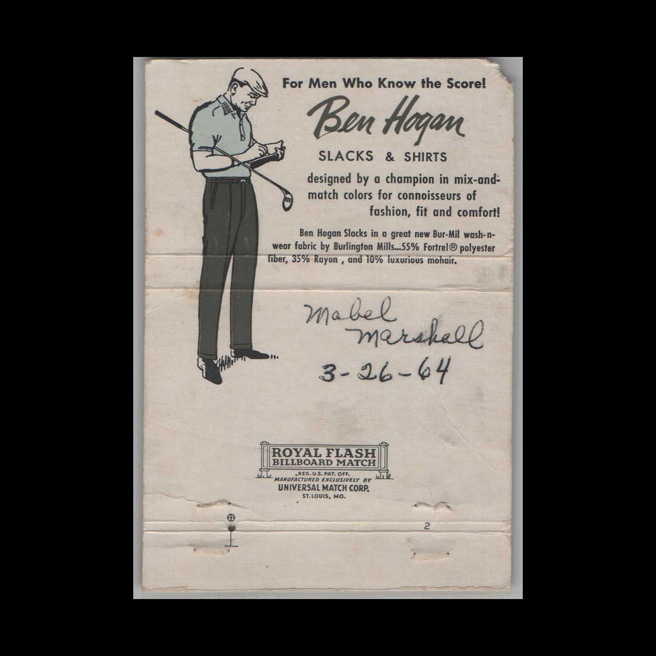 Ben Hogan Slacks & Shirts Matchbook Cover Indianapolis
