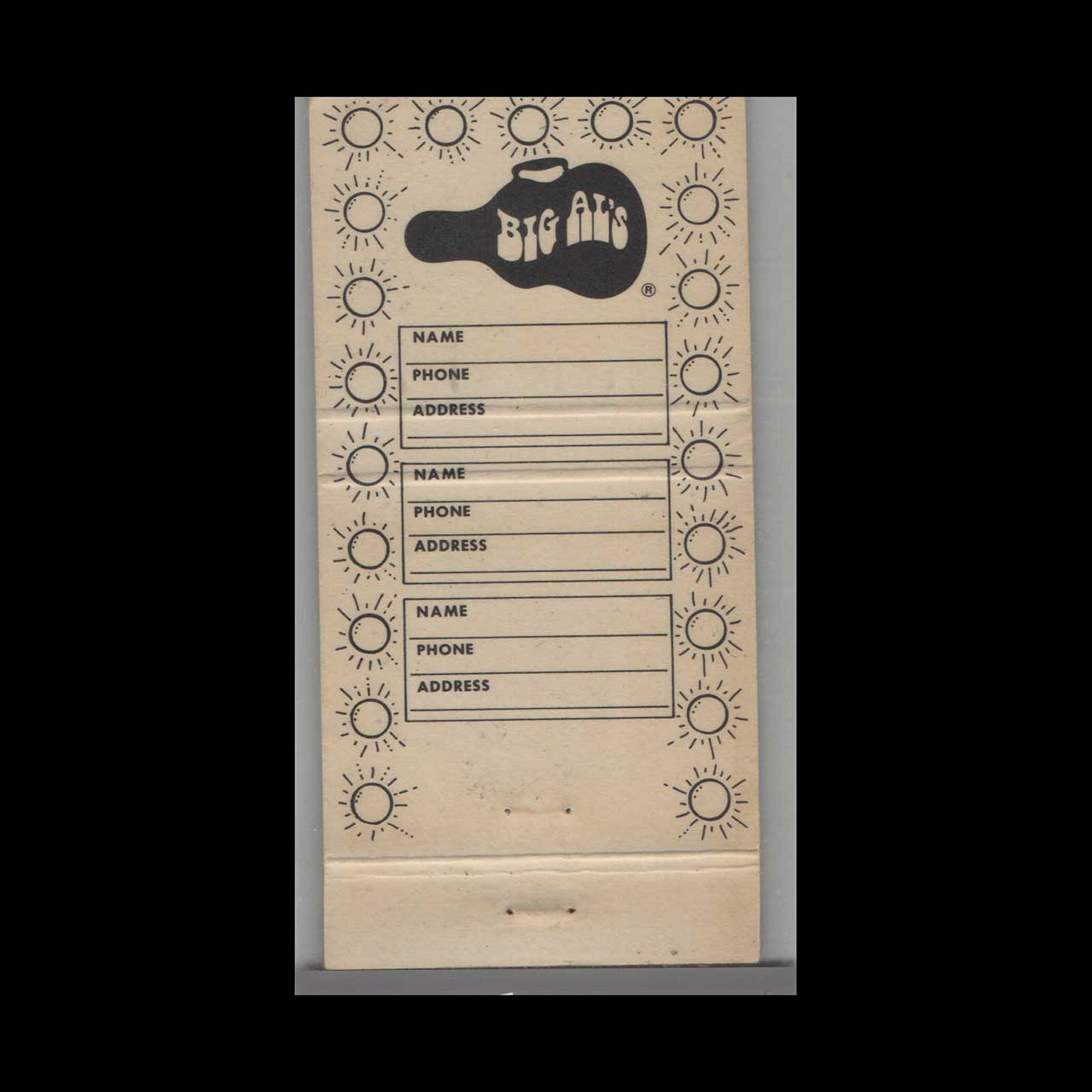 <h3>About this Vintage Matchbook</h3> <p>Big Al’s Night Club at the Holiday Inn in Toledo, OH, epitomized vibrant mid-century nightlife and entertainment. This vintage matchbook is a classic ephemera relic cherished by Americana collectors.</p> <p><strong>Brand:</strong> Matchbook Cover – Big Al’s Night Club Holiday Inn Toledo, OH</p> <p><strong>Category:</strong> Vintage Americana Memorabilia</p>