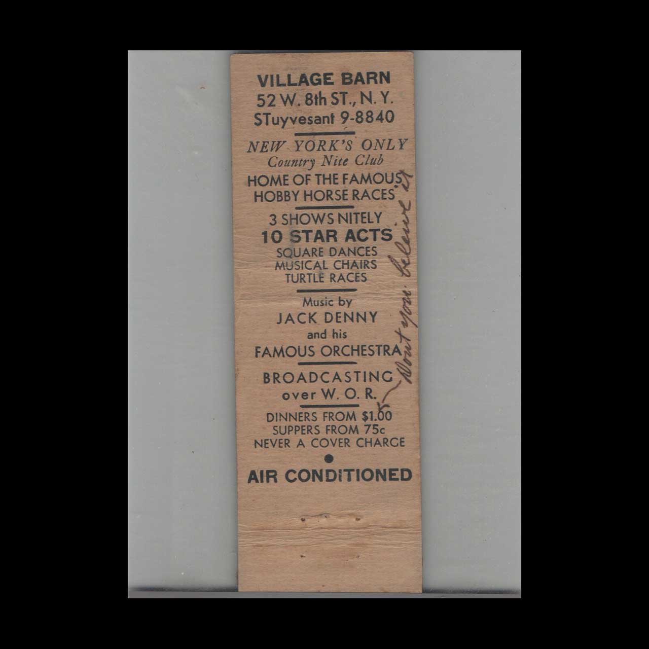 Big Don’s Village Barn Restaurant Matchbook Cover NYC