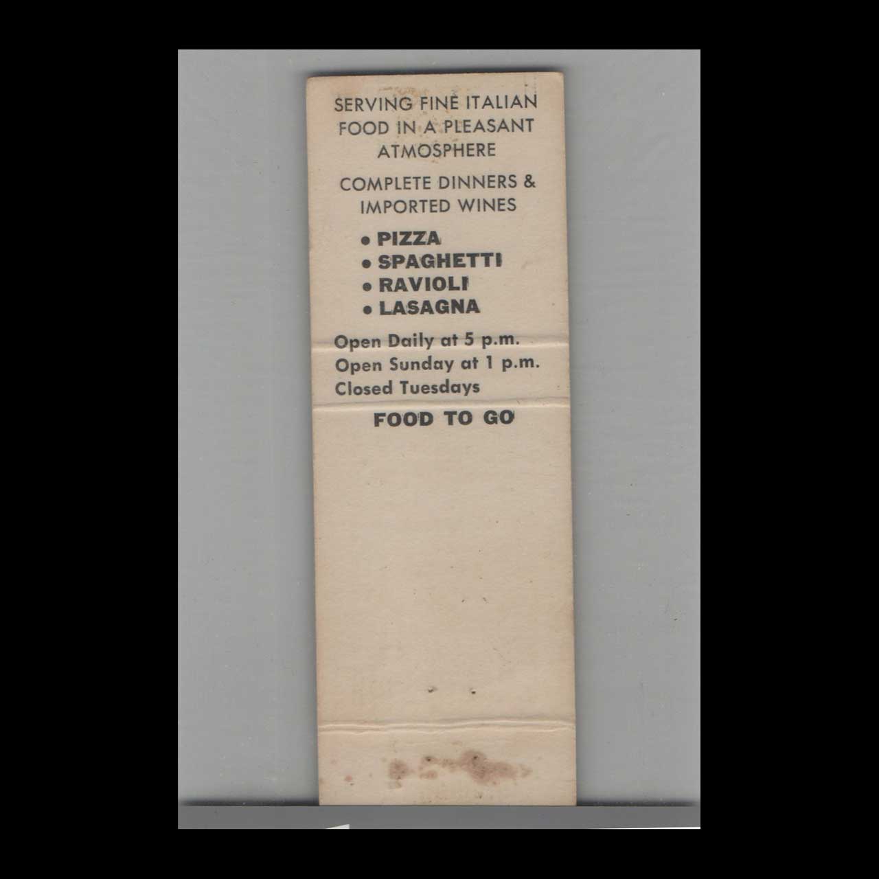 Bit Of Italy Restaurant in San Gabriel, CA, offered authentic Italian dining with a warm, inviting atmosphere. This vintage matchbook is a nostalgic piece of Americana for collectors.