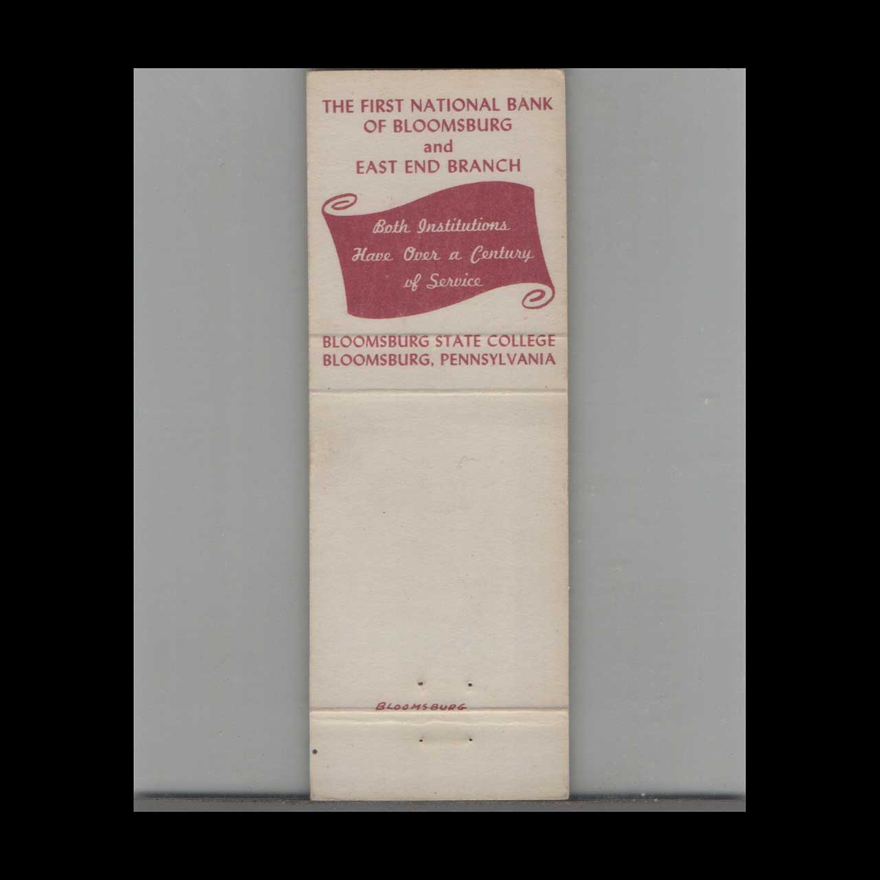 Bloomsburg State College in Bloomsburg, PA, a historic institution known for its vibrant campus life. A nostalgic piece of Americana for vintage matchbook collectors.