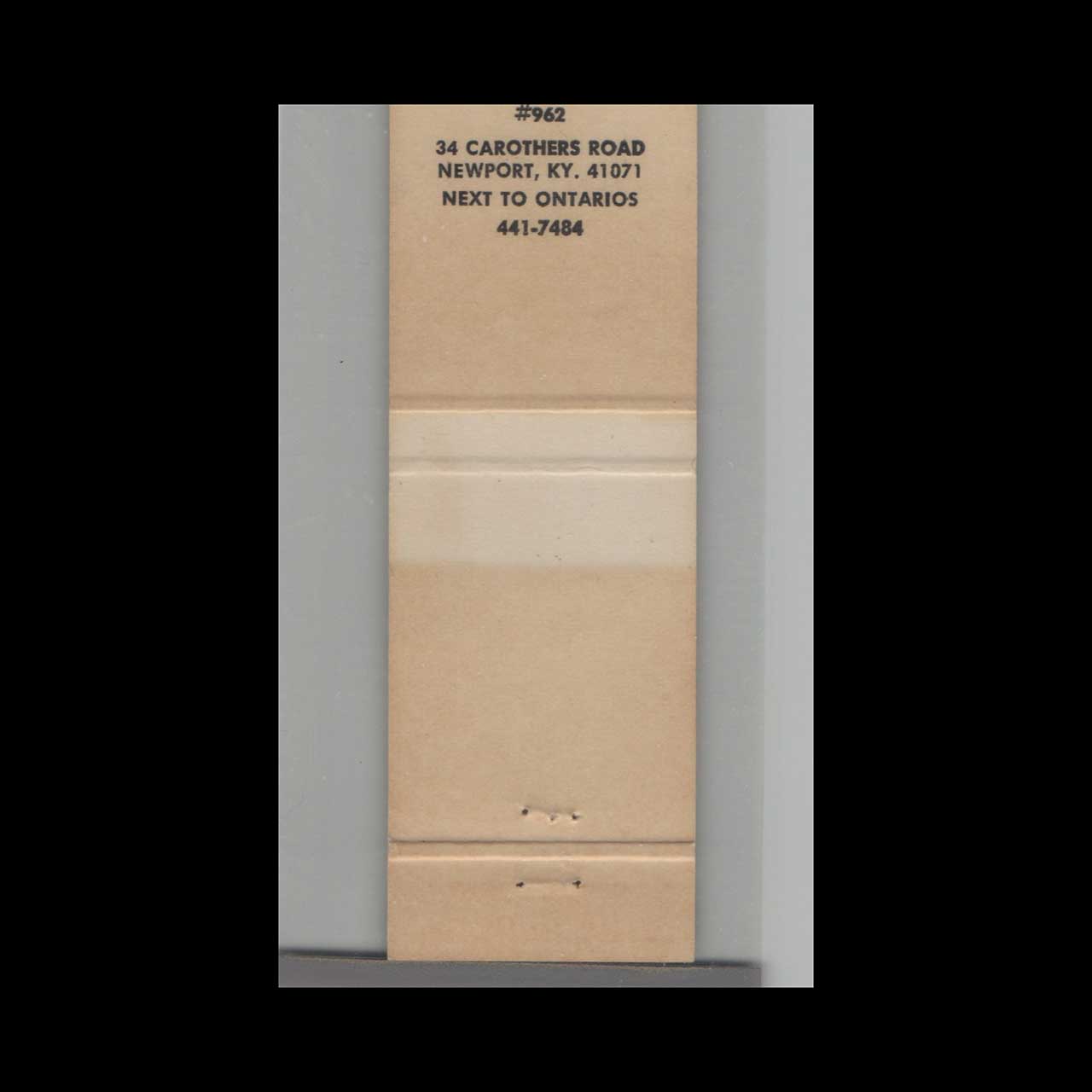 Bonanza Sirloin Pit in Newport, KY, served hearty steaks in a classic American setting. This matchbook is a nostalgic piece of Americana for collectors.