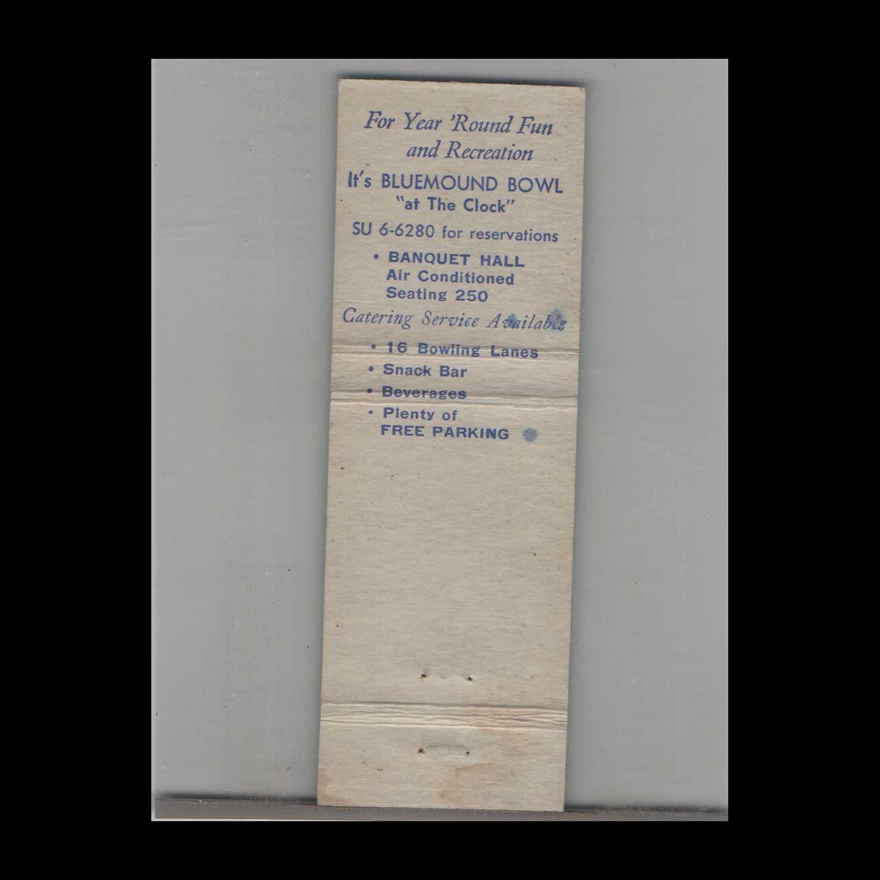 Bowling Blue Mound Bowl Matchbook Cover Brookfield WI