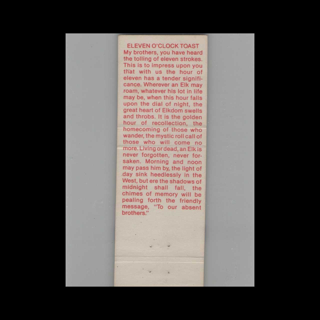 BPOE Elks Club 1224 St Petersburg Matchbook Cover