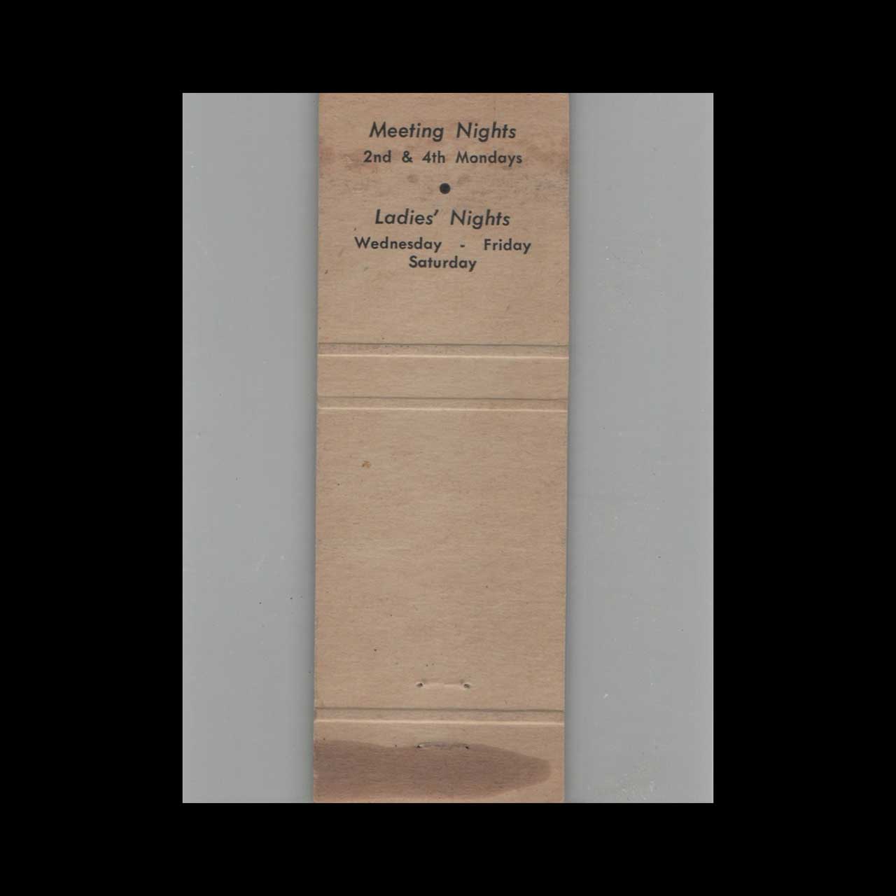 Discover the BPOE Elks Club 1250 in Red Bluff, CA, a historic social lodge with deep community roots. This matchbook is a classic ephemera relic cherished by Americana collectors.