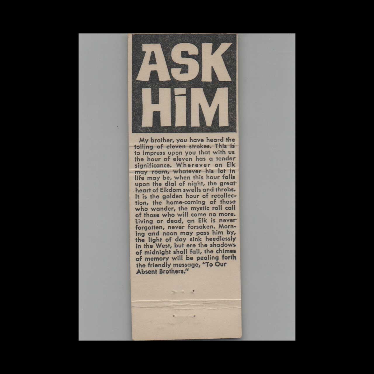 Discover the BPOE Elks Club in West Covina, CA, a historic social lodge from 1996. This vintage matchbook is a nostalgic piece of Americana for collectors.