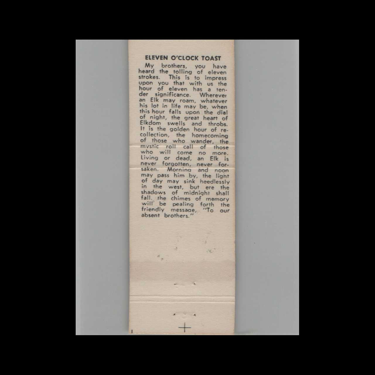 BPOE Elks Club 1996 Matchbook Cover West Covina CA
