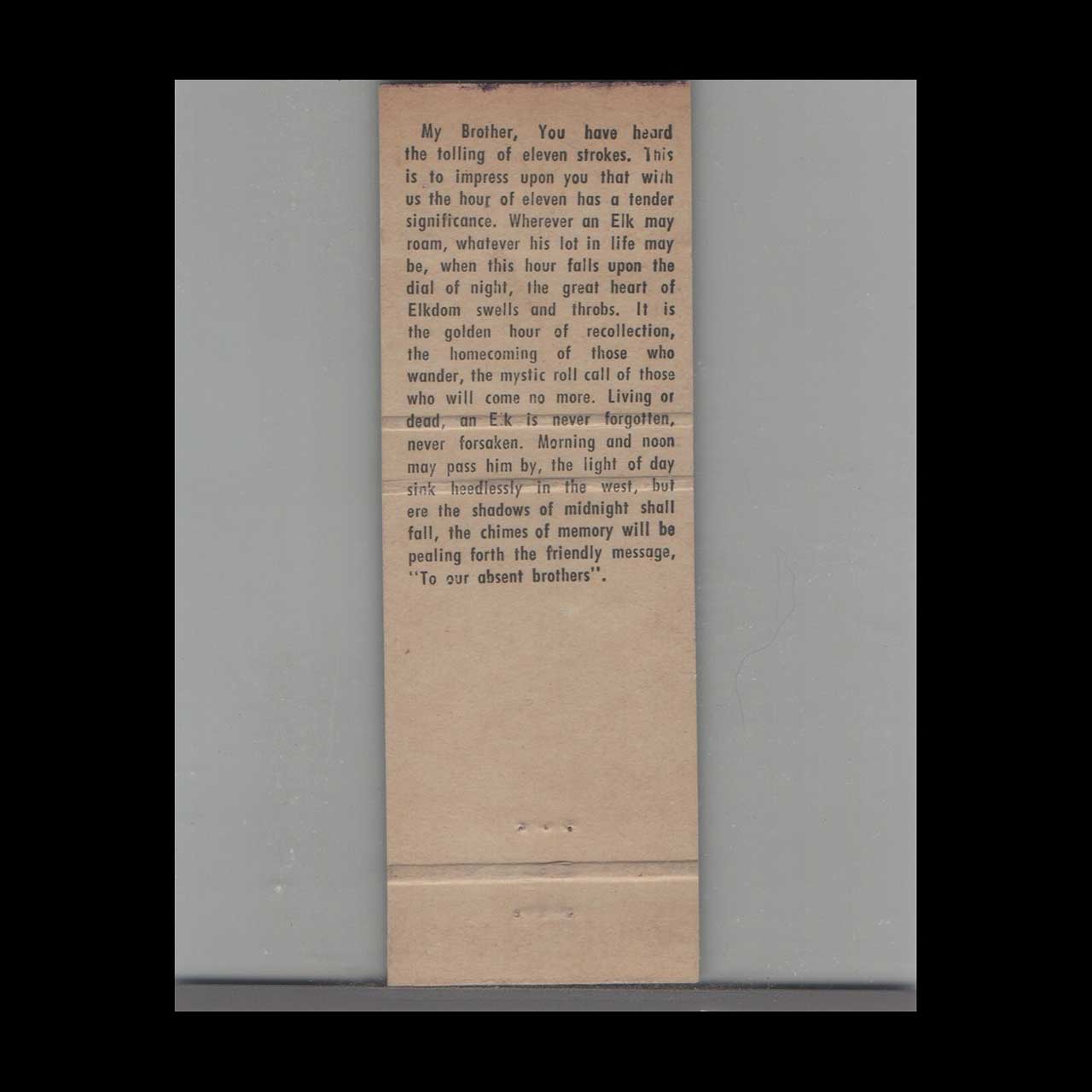 Home / Organizations & Institutions / Fraternal & Social Organizations / BPOE Elks / BPOE Elks Club No. 371 Lewiston ME Matchbook Cover