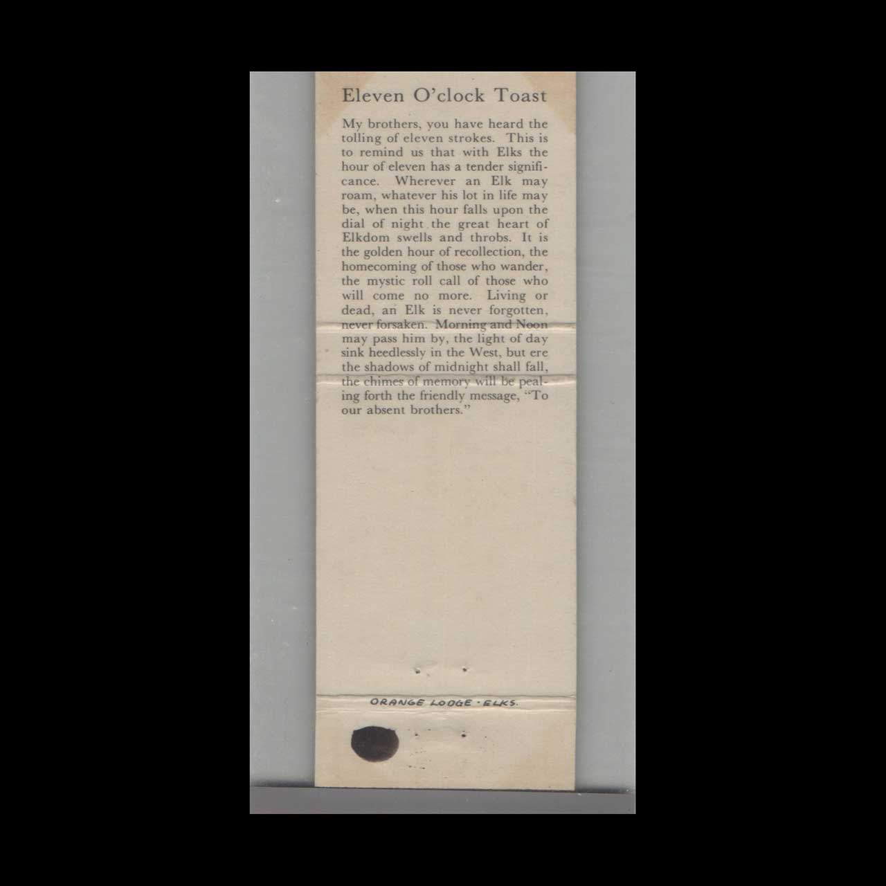 BPOE Elks Lodge #135 Orange NJ Matchbook Cover