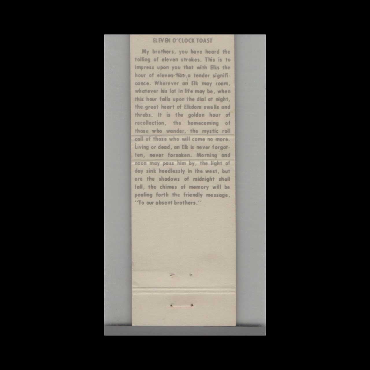 SKU: MC-0099846 Categories: Elks, Fraternal & Social Orgs, Organizations & Institutions Tags: collectible matchbook, Fraternal Organization, Springfield Memorabilia, Vintage Elks Lodge