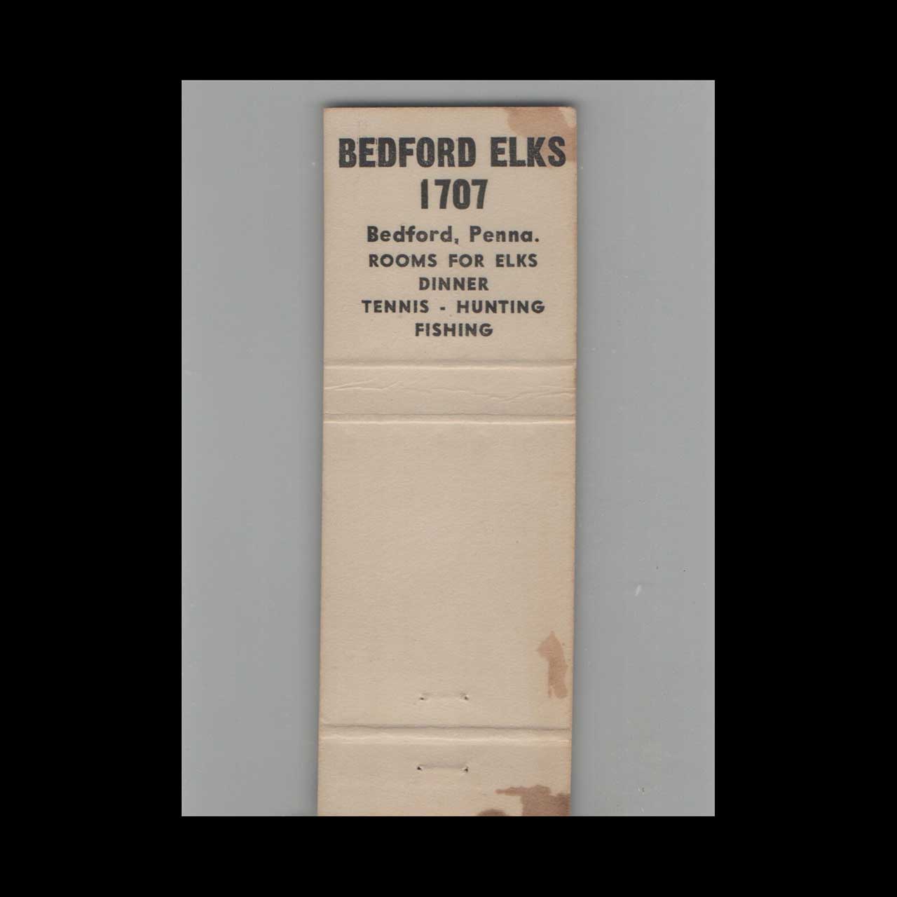 BPOE Elks Lodge 1707 Bedford PA Matchbook Cover