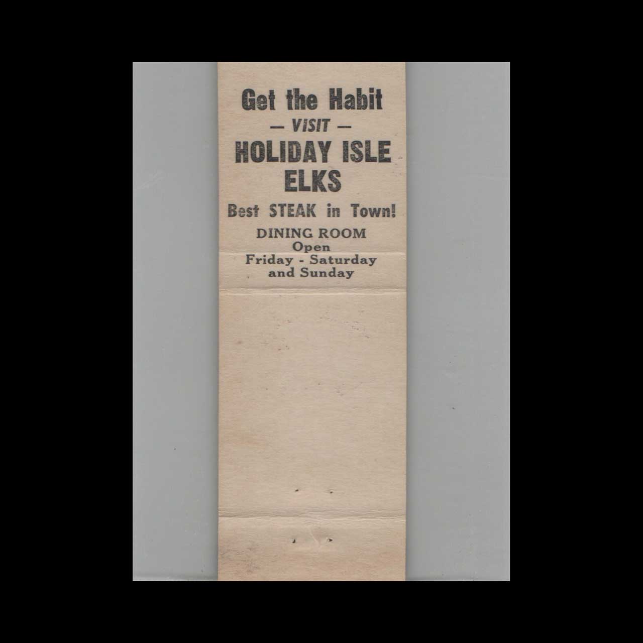 BPOE Elks Lodge 1912 Holiday Isle Matchbook Cover