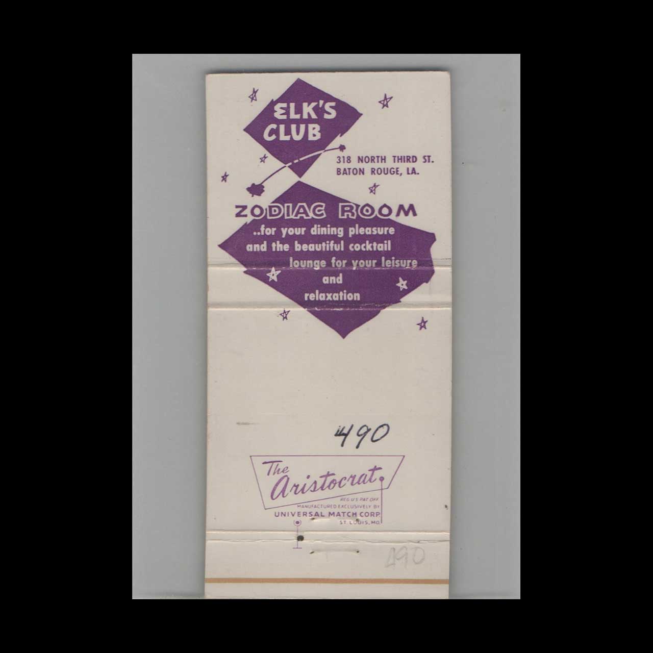BPOE Elks Lodge 490 Baton Rouge Matchbook Cover