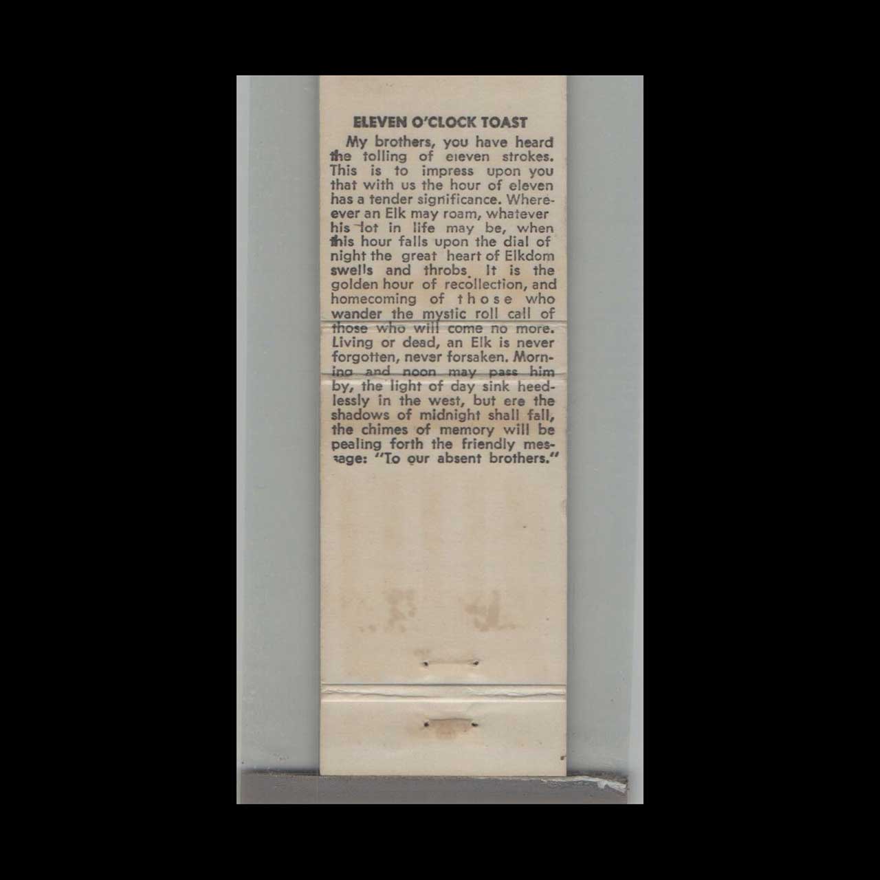 BPOE Elks Lodge No. 20 Peoria IL Matchbook Cover