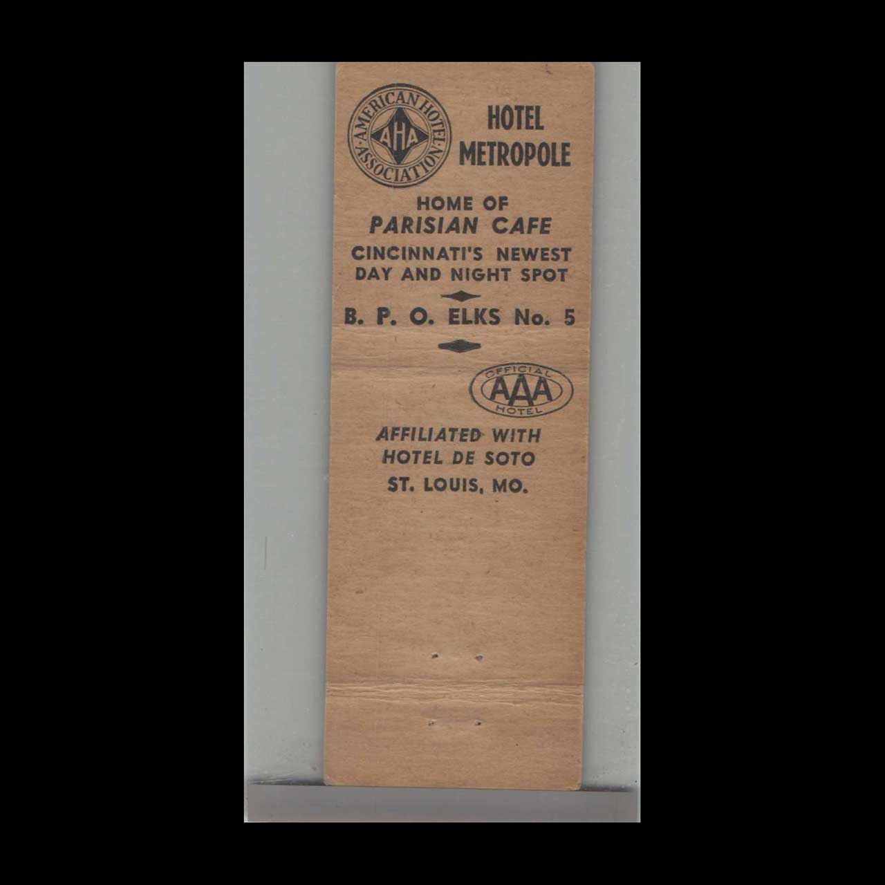 BPOE Elks Lodge No. 5 Cincinnati Matchbook Cover