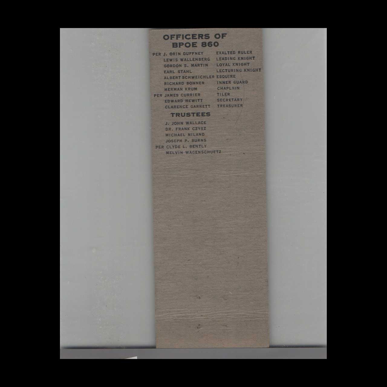 BPOE Elks Lodge No. 860 Matchbook Cover North Tonawanda