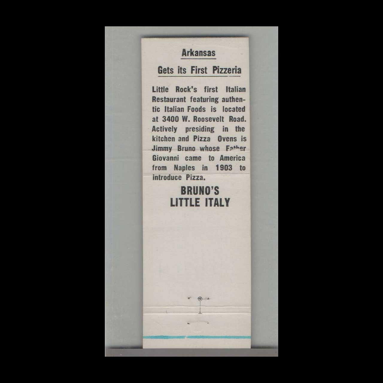 Bruno’s Italian Food Pizza Matchbook Cover Little Rock AR