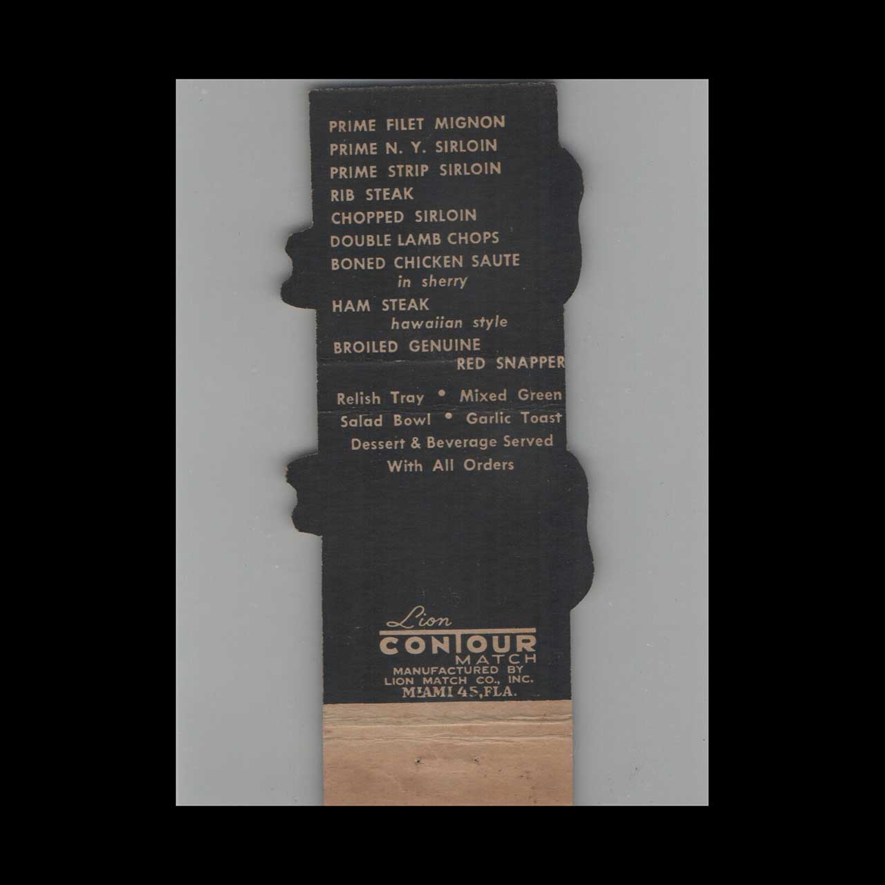 Brun’s Steak Pit Miami Matchbook Cover Lion Contour Art