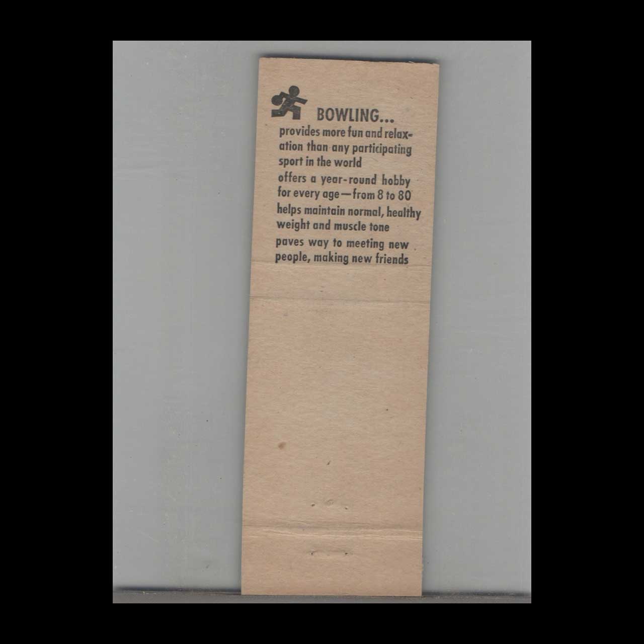 Brunswick Bowling Midway Lanes in Bismarck, ND, offered timeless entertainment and community fun. A nostalgic piece of Americana for vintage matchbook collectors.