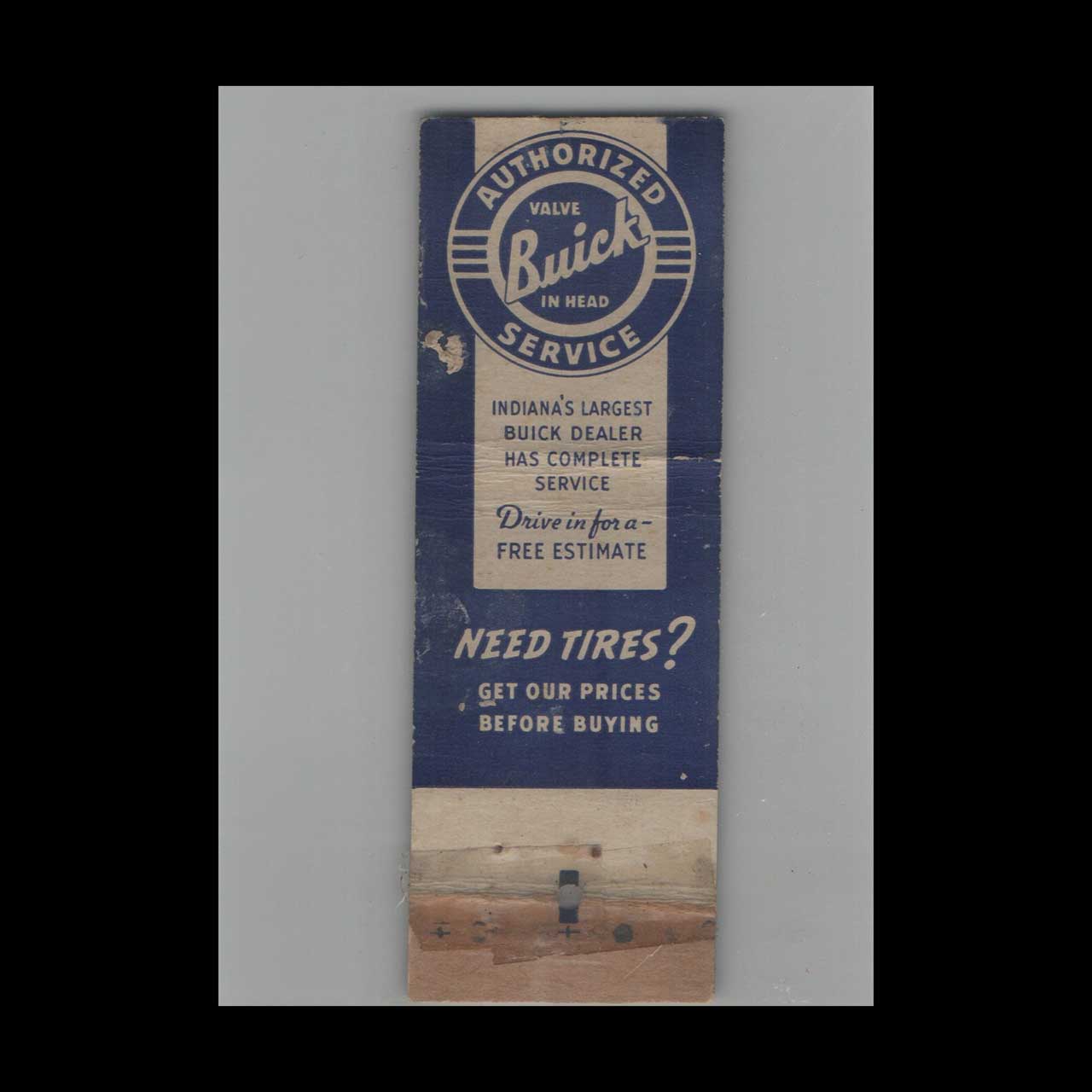 Buick Dealer Monarch Motor Co. Matchbook Cover Indianapolis