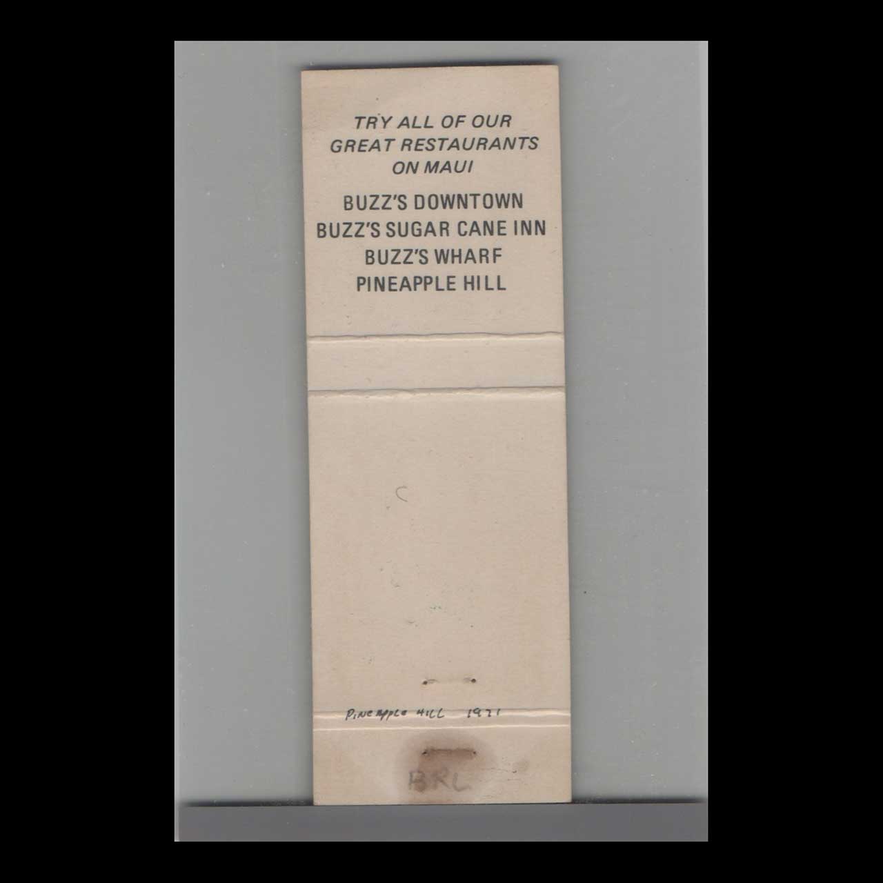 Buzz’s Sugarcane Inn Honolulu Matchbook Cover
