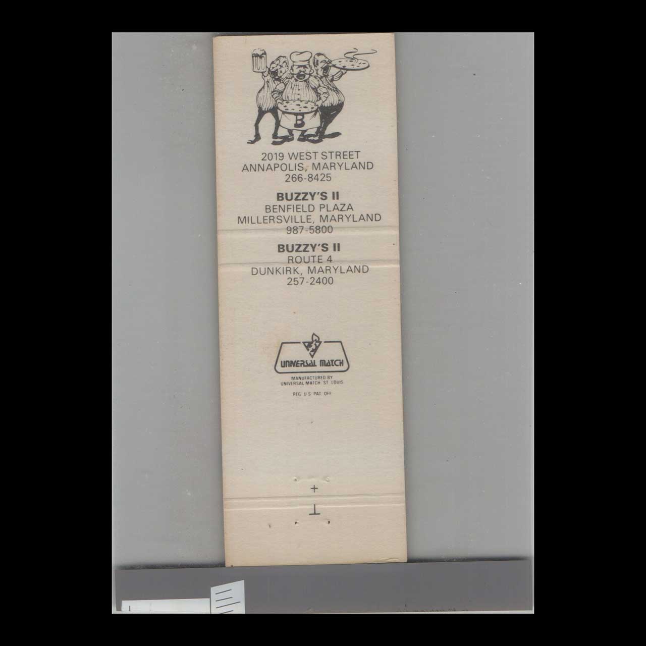 Buzzy’s Famous Pizza Matchbook Cover Annapolis MD