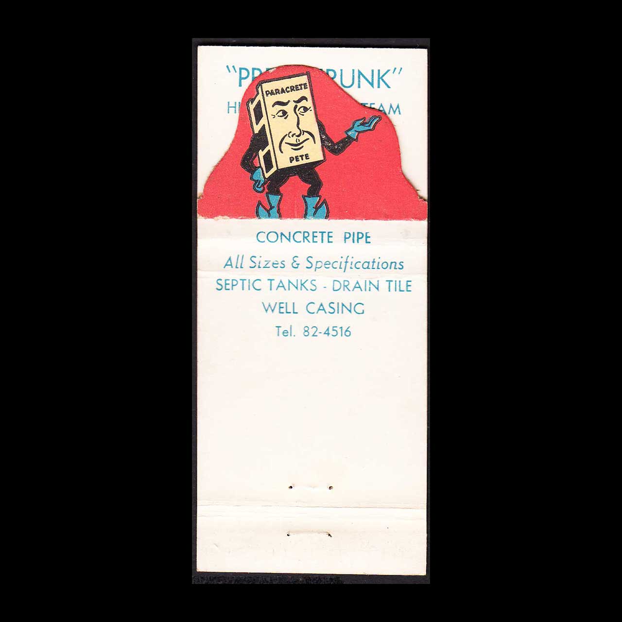 Concrete Pipe & Products of Richmond, Virginia, specialized in durable infrastructure materials essential to mid-century construction. This matchbook cover is a nostalgic piece of Americana for collectors and vintage ephemera enthusiasts.