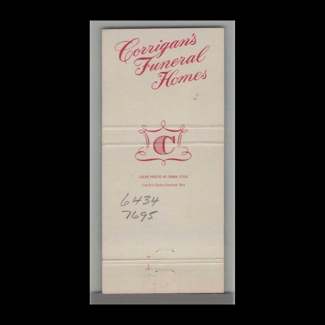 Corrigan’s Funeral Homes Cleveland Matchbook Cover