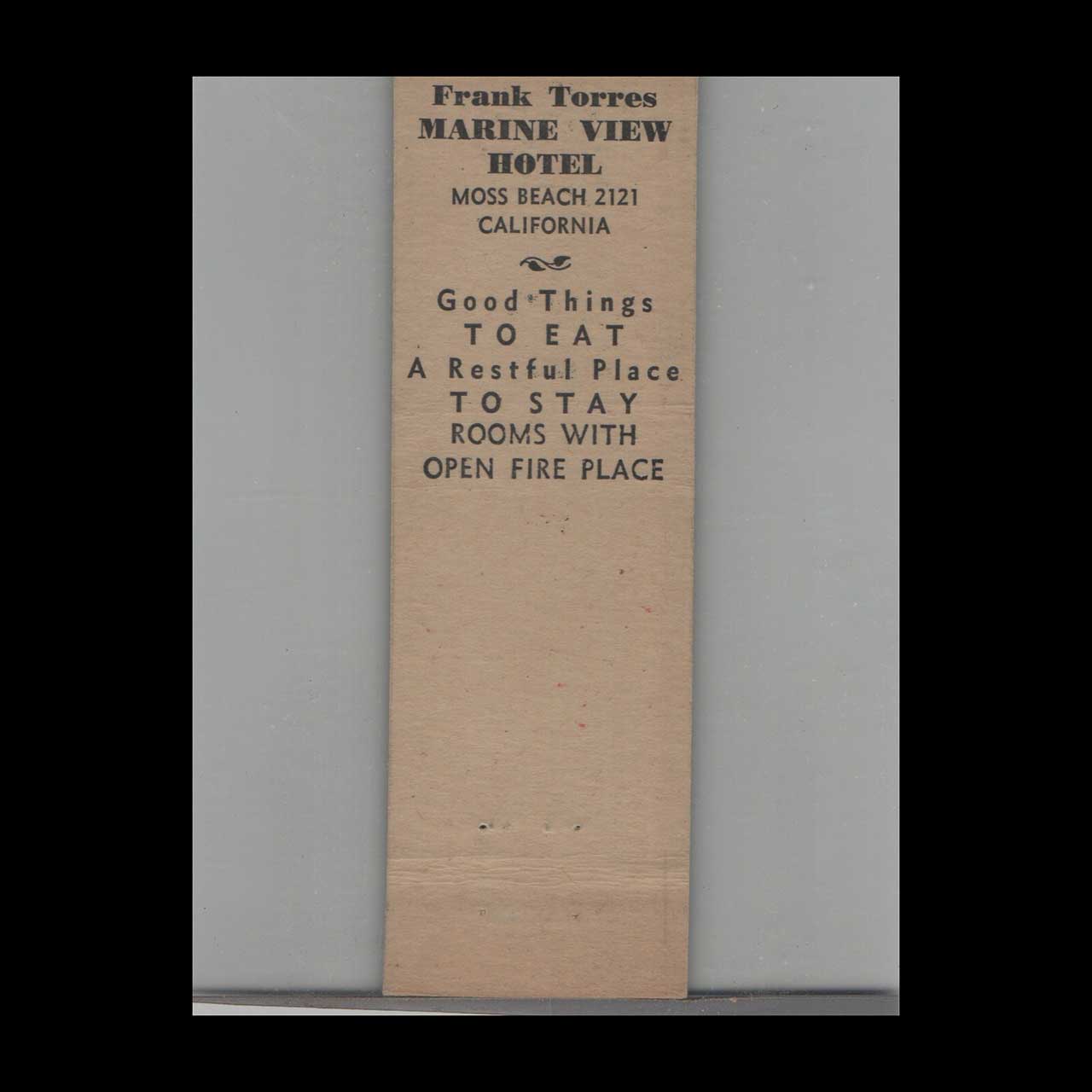 Discover the Marine View Hotel in Moss Beach, CA, a historic coastal retreat known for its scenic ocean vistas. This Crown Match full-length cover is a nostalgic piece of Americana for collectors.