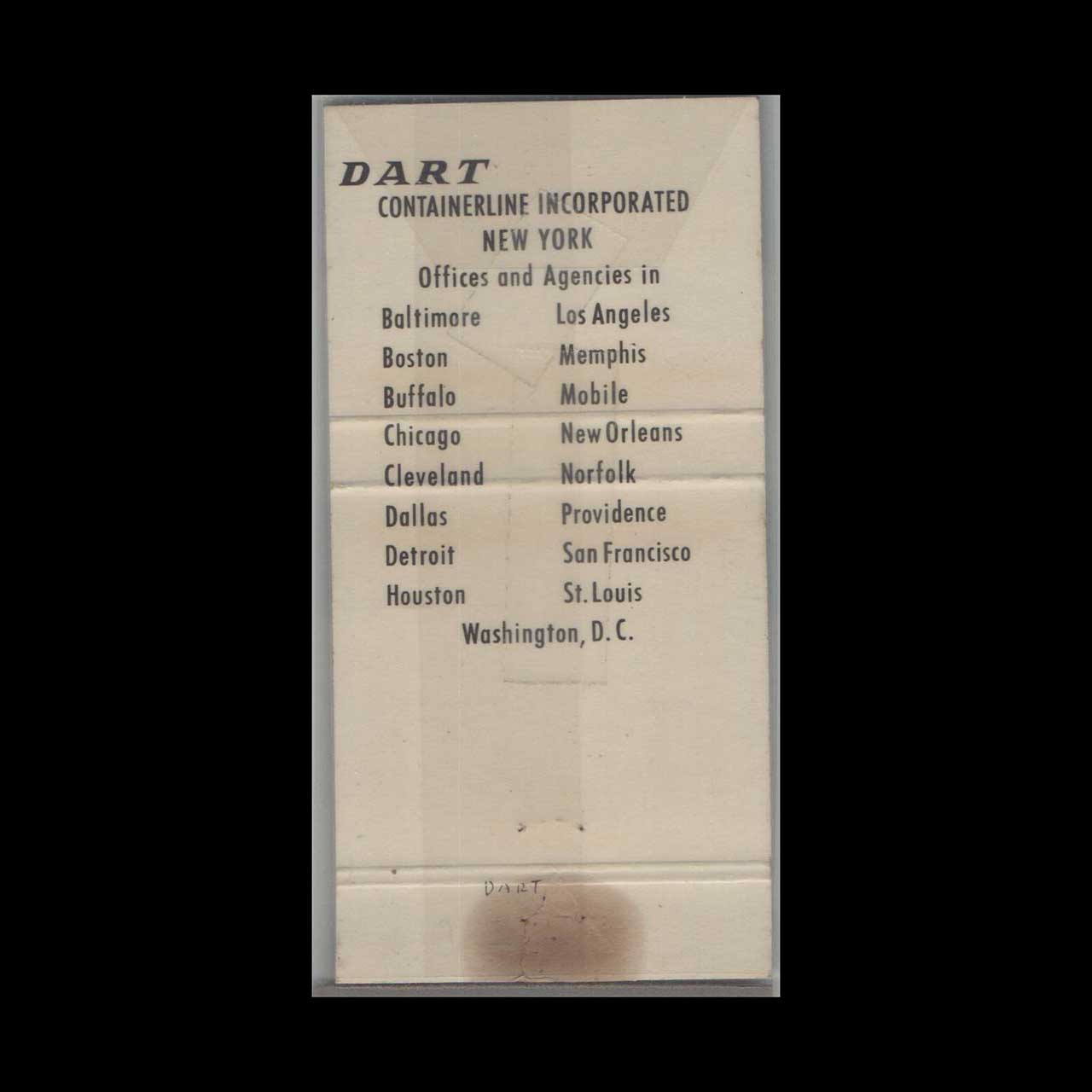 Dart Container Line Trucking Matchbook Cover NYC