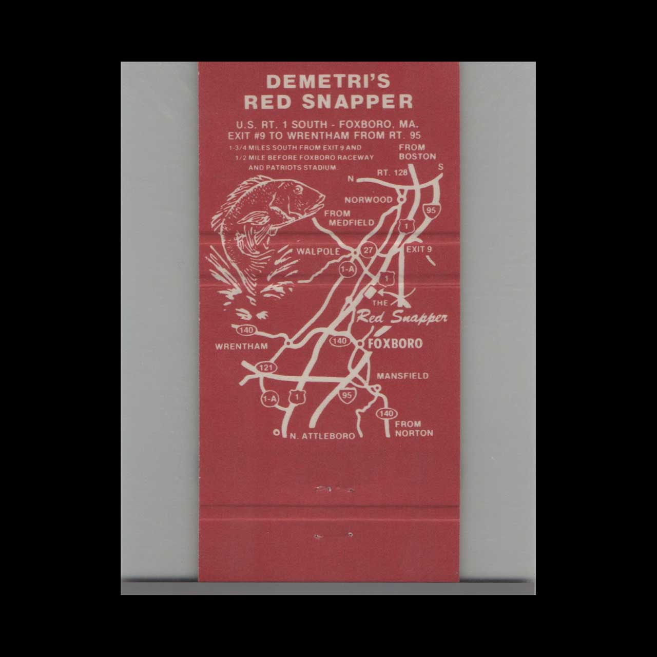 Demetri’s Famous Restaurant Foxboro Matchbook Cover