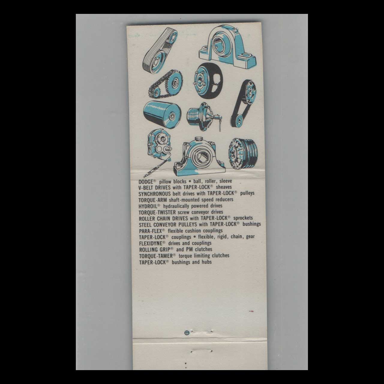 Dodge Transmissions by Precision Bearing Company in Omaha, NE, specialized in automotive parts and service. A nostalgic piece of Americana for vintage matchbook collectors.